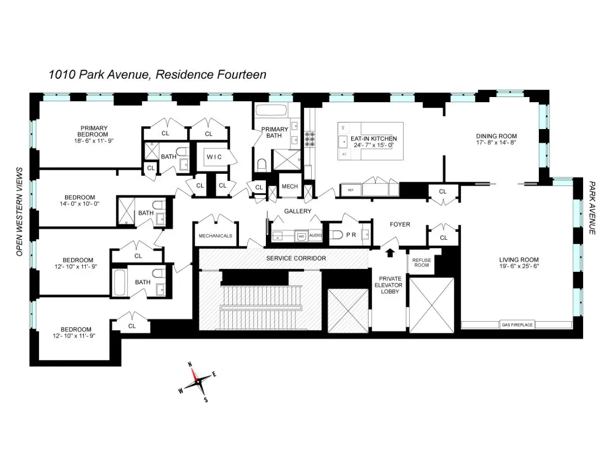 Listed with Chris Kann and Jennifer Ireland of Corcoran for $25 million, the home occupies the 14th floor of the boutique condominium and has been meticulously upgraded with marble finishes, new lighting, custom closets, and smart home systems throughout.
