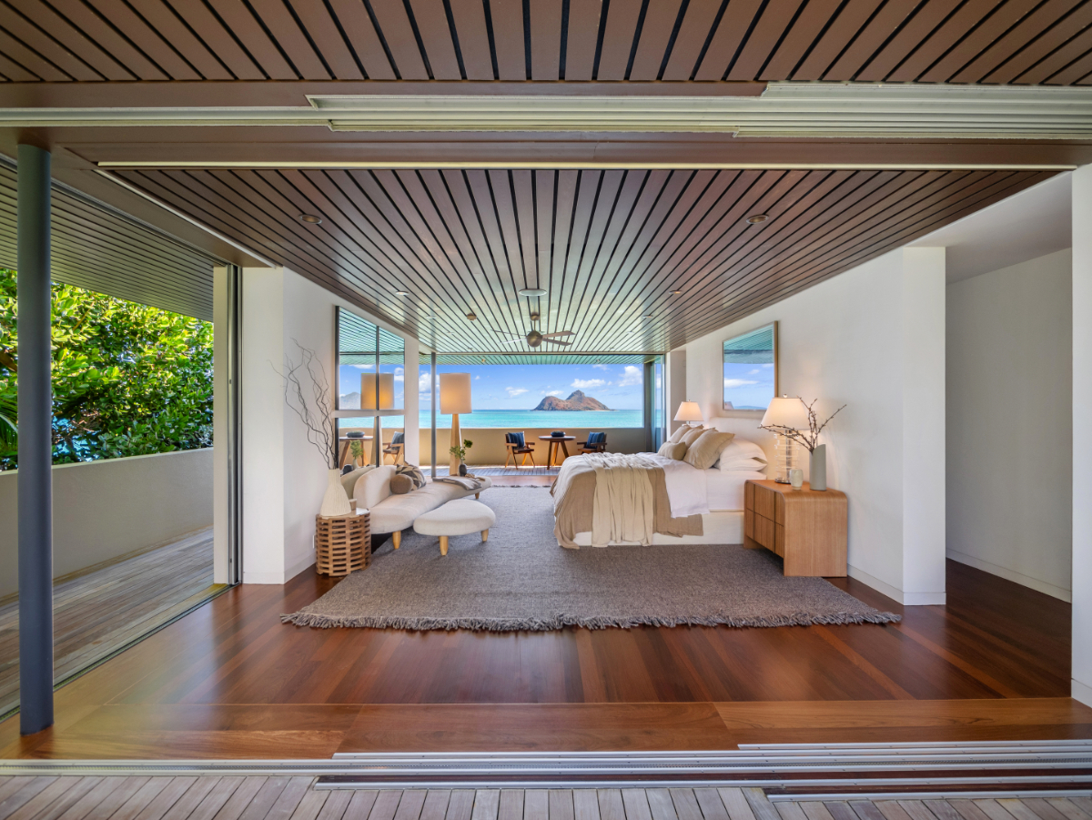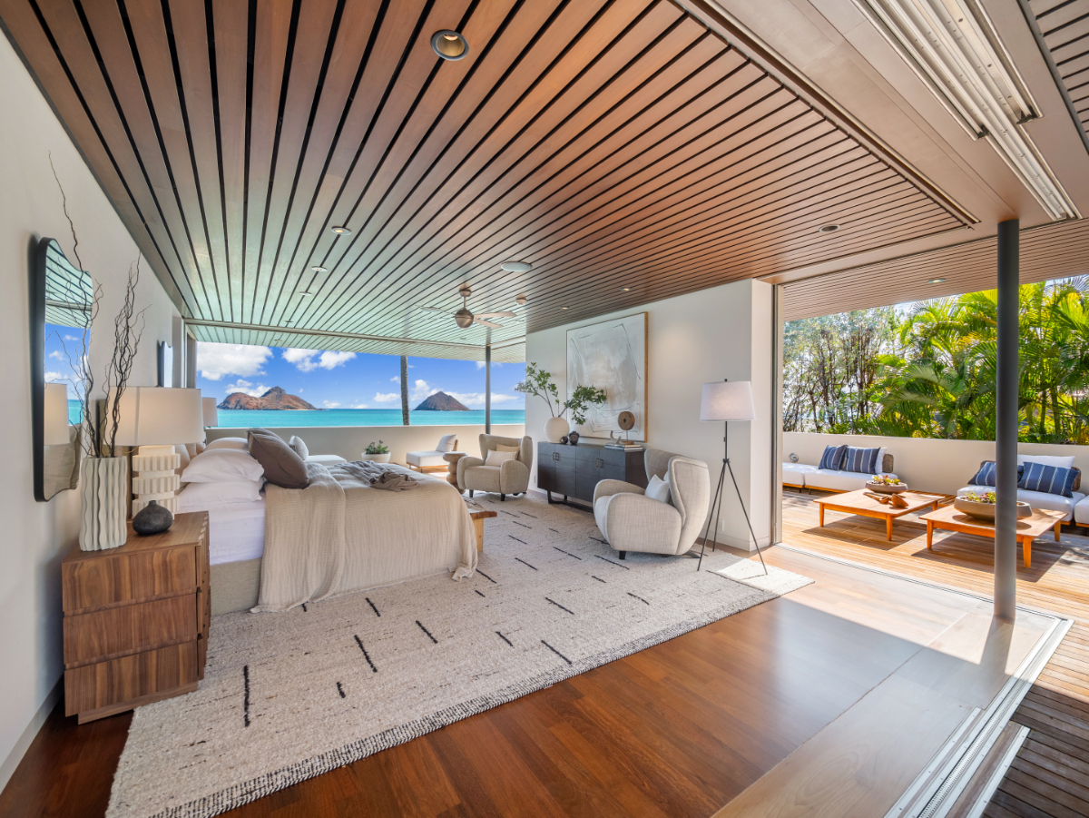 Set across nearly an acre of prime oceanfront land, the property boasts over 150 linear feet of direct waterfront, more than any other residence in Lanikai, according to List Sotheby’s International Realty, which is handling the listing. From almost every angle, the home enjoys uninterrupted, cinematic views of the Mokulua Islands, the twin offshore islets that have become one of O‘ahu’s most recognisable natural icons.