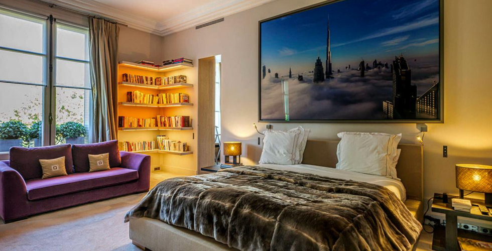 This opulent residence offers panoramic views of Paris that are nothing short of swoon-worthy. The extensive rooftop garden, adorned with lush greenery, features a bar and dining table perfect for intimate gatherings.
