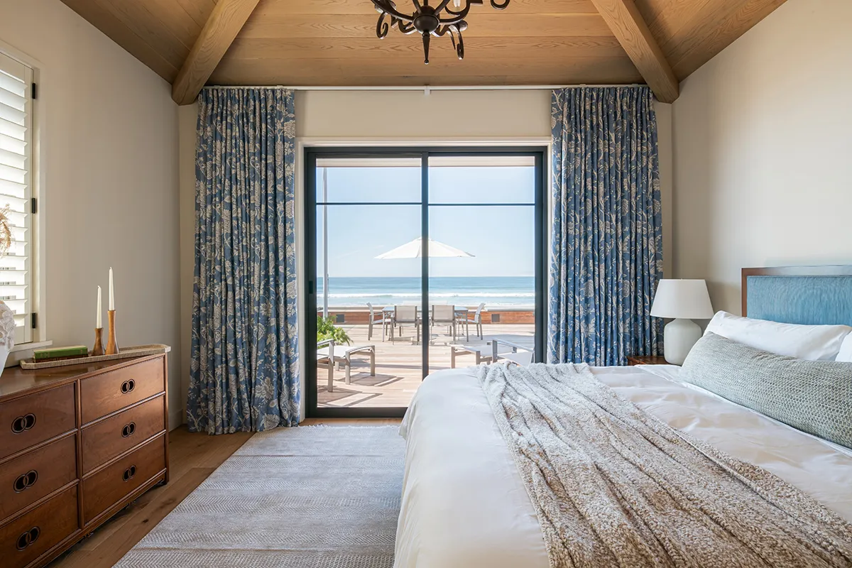 The main residence, spanning 4,500 square feet, opens seamlessly to the ocean, each of its five bedrooms offering a private view of the surf below. Two guest houses, crafted with equal precision, sit quietly behind the main home, while an open-air “ping-pong pavilion” by the pool adds a touch of whimsy — a reminder that even the most serious architecture can embrace play.